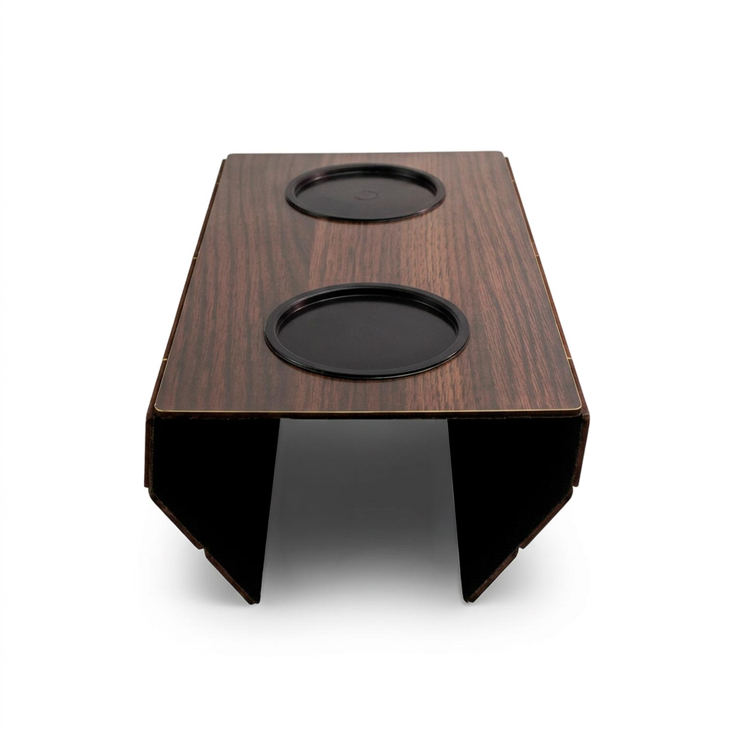 A estrutura flexível permite que a bandeja se adapte a diferentes formatos de braço de sofá, garantindo encaixe firme e estabilidade durante o uso. O acabamento com visual amadeirado sofisticado adiciona um toque moderno à decoração, combinando facilmente com diferentes estilos de ambiente.