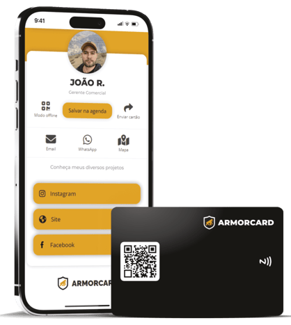 O ArmorCard foi feito exatamente para isso! Como é um cartão de visita digital, você pode compartilhar seu contato via NFC para dispositivos eletrônicos, como Smartphones, de forma rápida e segura.