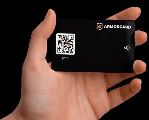 Aproximação NFC: Basta aproximar o ArmorCard do celular do destinatário para que as informações sejam transferidas instantaneamente.