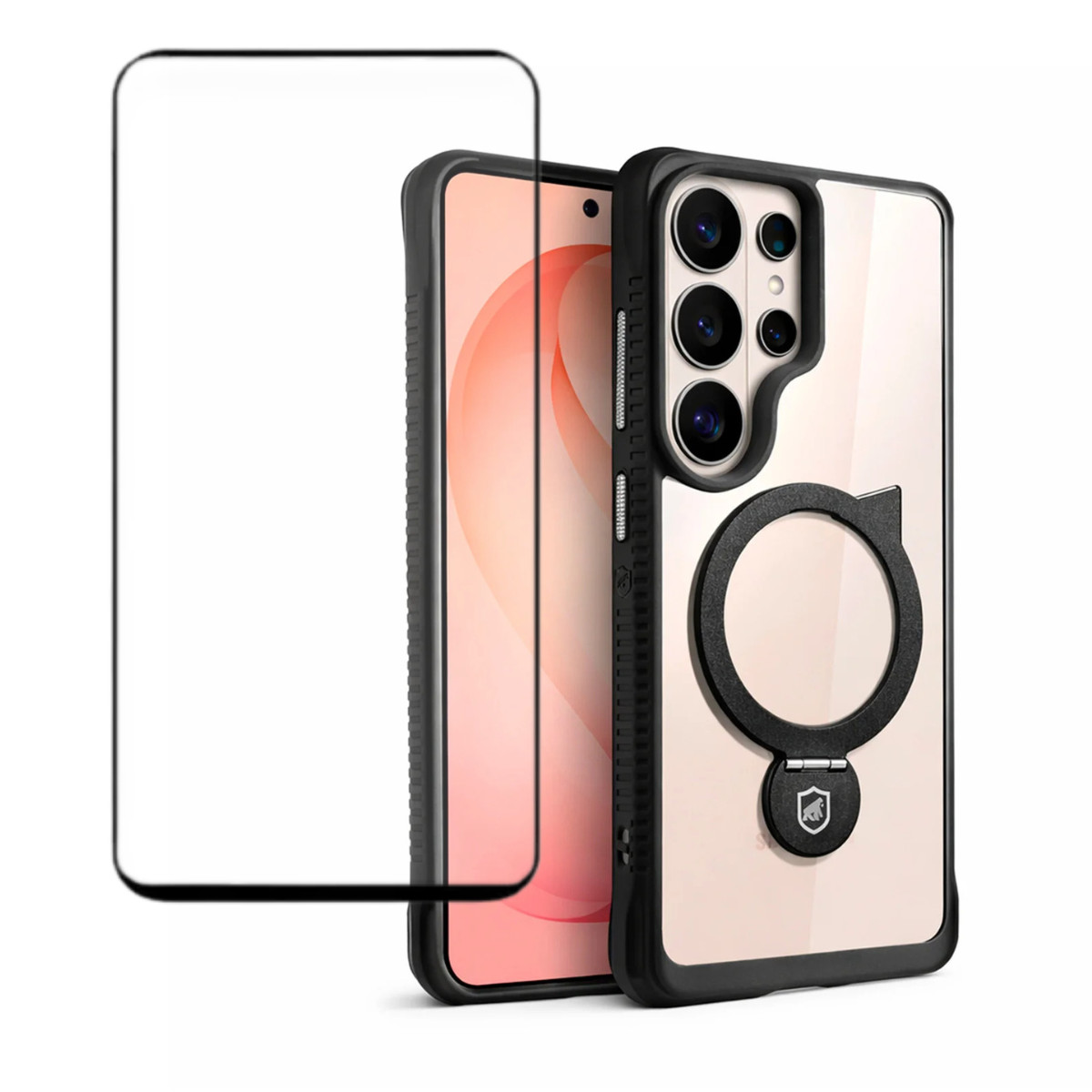O grande diferencial da capa é o anel MagSafe multifuncional, que além de ser compatível com carregadores magnéticos, também atua como um suporte kickstand ajustável, permitindo apoiar o celular em posição vertical ou horizontal para assistir vídeos, fazer videochamadas ou até mesmo trabalhar com mais conforto.