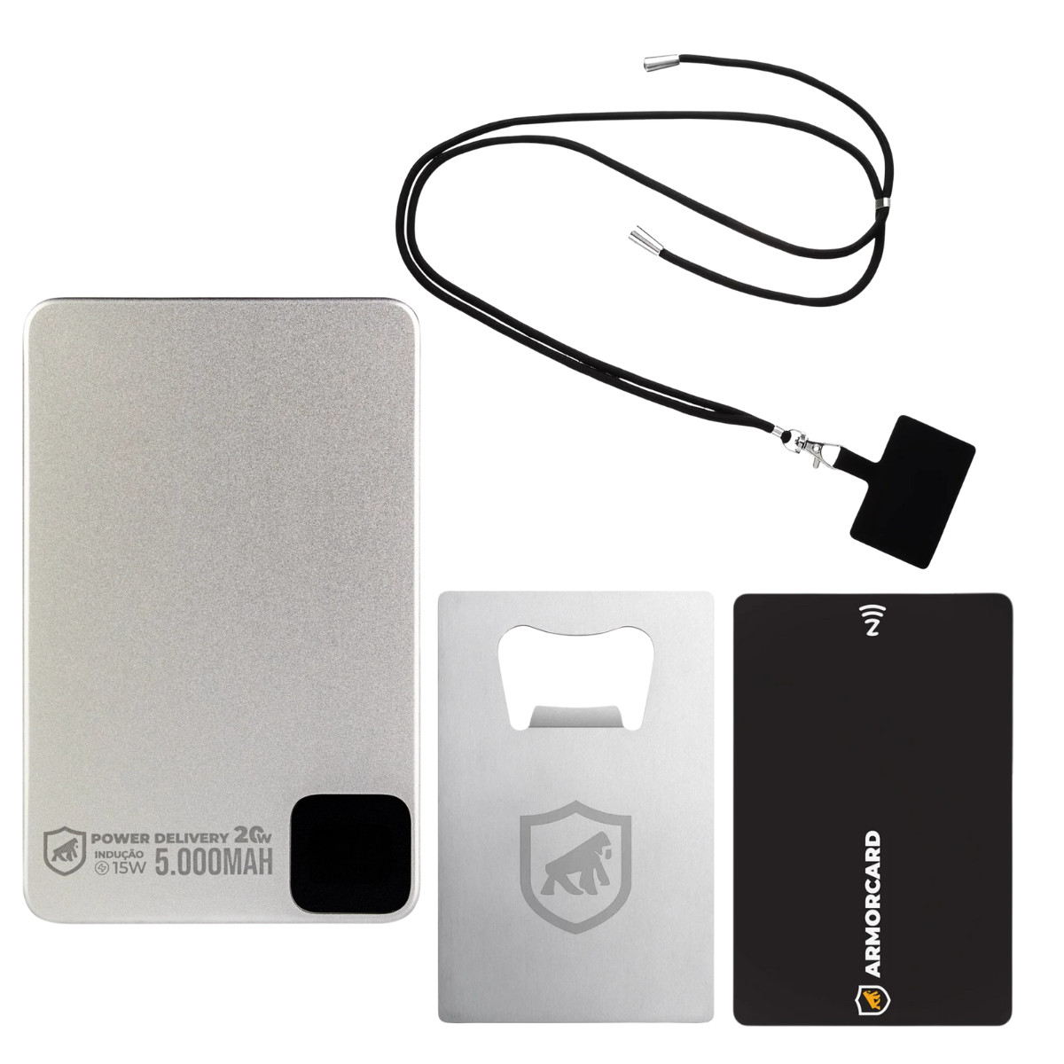 kit gshield, kit magsafe, power bank magsafe, carregador magsafe 5000mah, carregador sem fio, cartão digital nfc, cartão de visita nfc, cordão salva celular, phone strap, cartão abridor, acessórios premium, kit presente premium