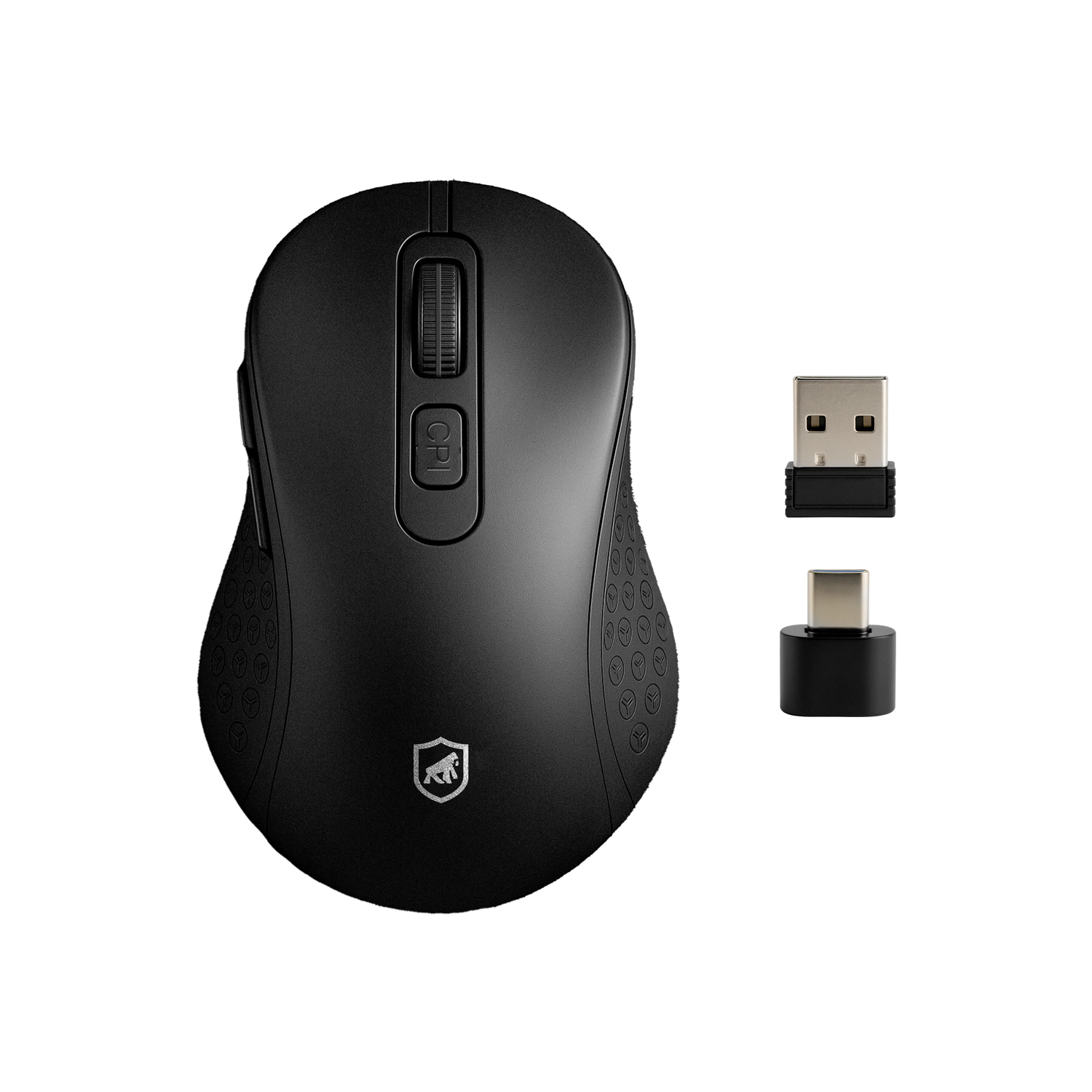 A conexão sem fio 2.4G garante uma experiência estável, sem atrasos e com total liberdade de movimento. O receiver é do tipo USB-A, e o produto acompanha um adaptador para USB-C, garantindo compatibilidade com notebooks, desktops e tablets que tenham entrada USB-C, sem a necessidade de drivers ou instalações adicionais. Basta conectar e usar.