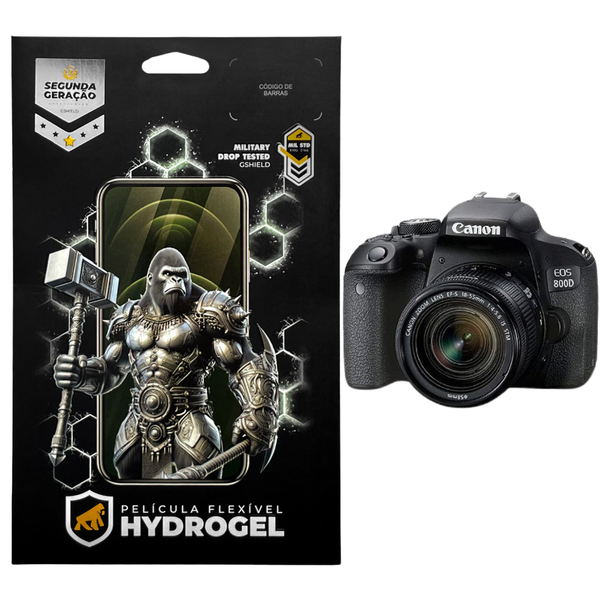 A Película de Hydrogel para Canon EOS 800D, da Gshield, garante proteção extra para a tela do seu dispositivo. Produzida com a tecnologia hidro nano pet + material semelhante ao silicone, são ultra resistentes contra riscos e com revestimento oleofóbico, atenuando as marcas de digitais na tela do aparelho; a película se adapta às extremidades curvadas, cobrindo todo o visor.