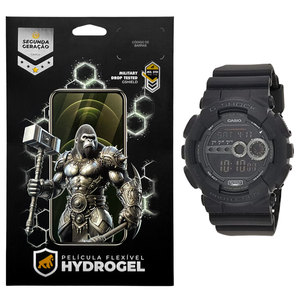 A Película de Hydrogel para Casio G-Shock GD-100, da Gshield, garante proteção extra para a tela do seu dispositivo. Produzida com a tecnologia hidro nano pet + material semelhante ao silicone, são ultra resistentes contra riscos e com revestimento oleofóbico, atenuando as marcas de digitais na tela do aparelho; a película se adapta às extremidades curvadas, cobrindo todo o visor.