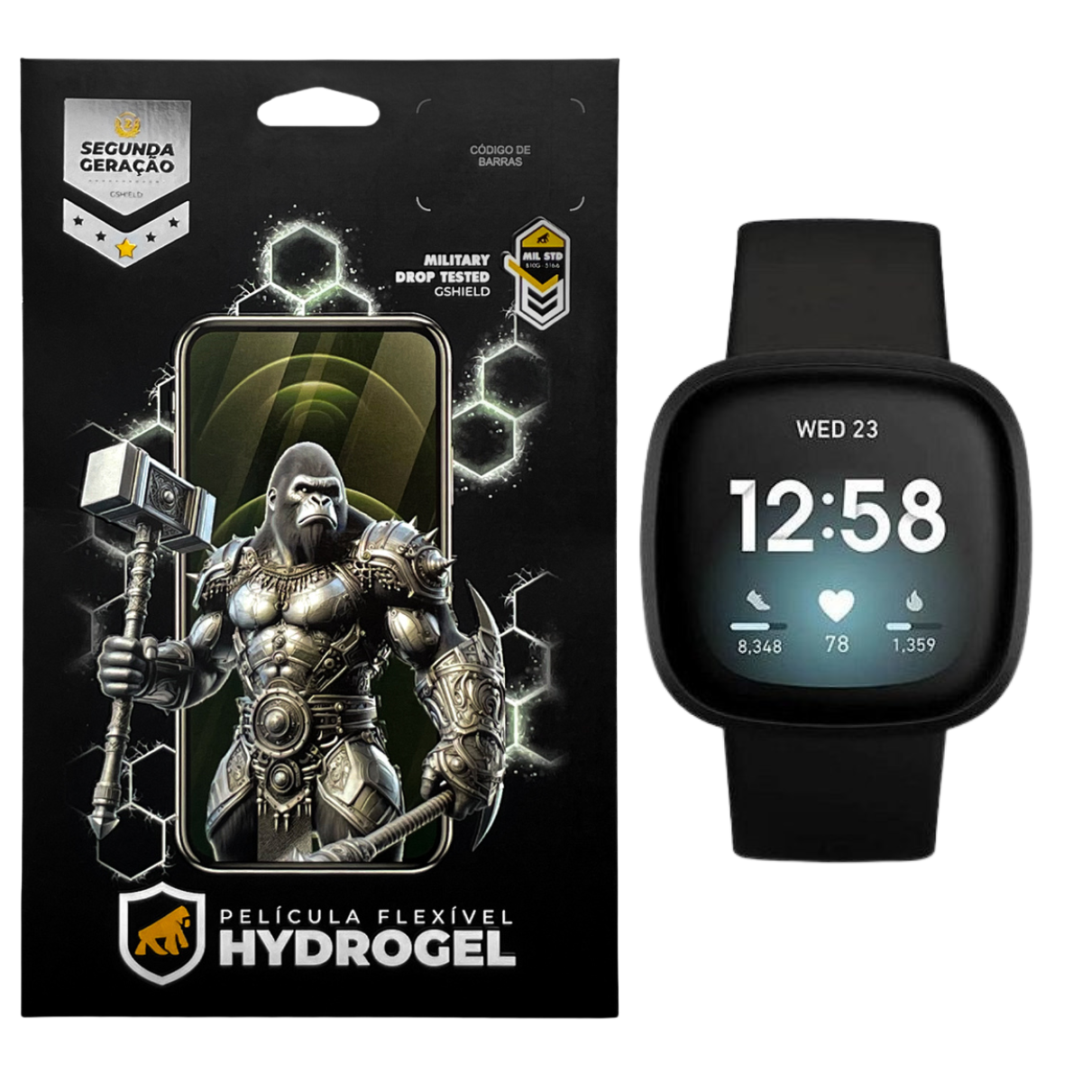 A Película de Hydrogel para Fitbit Versa 3, da Gshield, garante proteção extra para a tela do seu dispositivo. Produzida com a tecnologia hidro nano pet + material semelhante ao silicone, são ultra resistentes contra riscos e com revestimento oleofóbico, atenuando as marcas de digitais na tela do aparelho; a película se adapta às extremidades curvadas, cobrindo todo o visor.