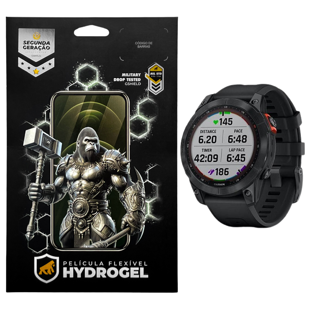 A Película de Hydrogel para Garmin Fenix 7, da Gshield, garante proteção extra para a tela do seu dispositivo. Produzida com a tecnologia hidro nano pet + material semelhante ao silicone, são ultra resistentes contra riscos e com revestimento oleofóbico, atenuando as marcas de digitais na tela do aparelho; a película se adapta às extremidades curvadas, cobrindo todo o visor.