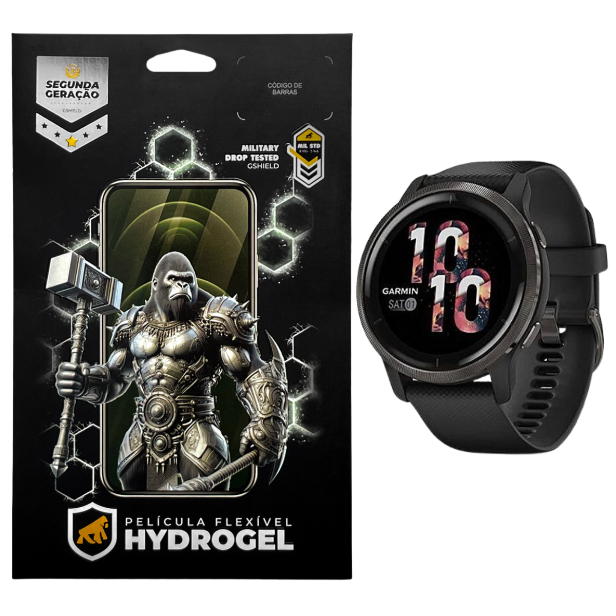 A Película de Hydrogel para Garmin Venu 2, da Gshield, garante proteção extra para a tela do seu dispositivo. Produzida com a tecnologia hidro nano pet + material semelhante ao silicone, são ultra resistentes contra riscos e com revestimento oleofóbico, atenuando as marcas de digitais na tela do aparelho; a película se adapta às extremidades curvadas, cobrindo todo o visor.