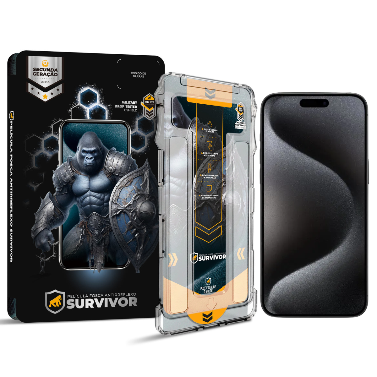 Película para iPhone 15 Pro Max - Fosca Antirreflexo com Aplicador - Survivor - Gshield