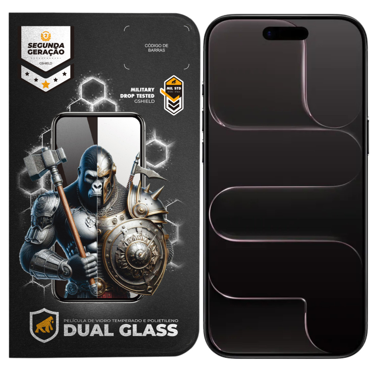 A Película Dual Glass é fabricada com Polietileno e reforçada com microfilamentos de Fibra de Vidro, a união entre o plástico e a fibra de vidro, fazem como que a Dual Glass seja uma película única no mundo. Possui acabamento nas laterais afim de preencher toda extremidade do aparelho e garantir o máximo de proteção ao celular.