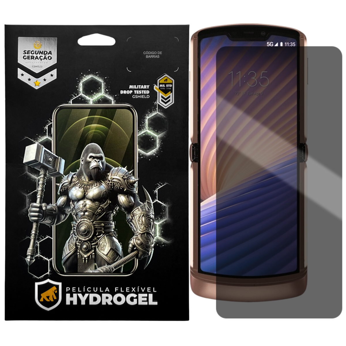 A Película Privacidade de Hydrogel para Motorola Razr 5G, da Gshield, garante proteção extra para a tela do seu dispositivo e garante sua privacidade. Produzida com a tecnologia hidro nano pet + material semelhante ao silicone, são ultra resistentes contra riscos e com revestimento oleofóbico, atenuando as marcas de digitais na tela do aparelho e impedindo que o conteúdo da tela seja visto lateralmente; a película se adapta às extremidades curvadas, cobrindo todo o visor.