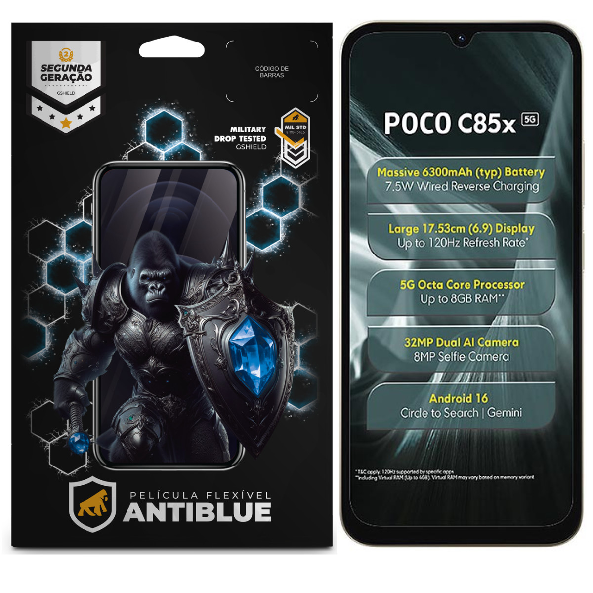 Não há nada melhor do que realizar dois investimentos em um só: cuidar da sua saúde e do seu bem material, por isso a película AntiBlue é perfeita para você! Protege o seu Poco C85x e a sua saúde!