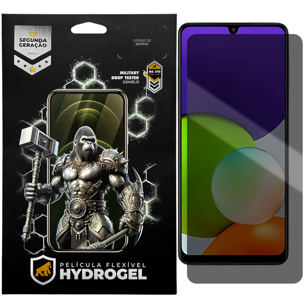 A Película Privacidade de Hydrogel para Samsung Galaxy A22 4G, da Gshield, garante proteção extra para a tela do seu dispositivo e garante sua privacidade. Produzida com a tecnologia hidro nano pet + material semelhante ao silicone, são ultra resistentes contra riscos e com revestimento oleofóbico, atenuando as marcas de digitais na tela do aparelho e impedindo que o conteúdo da tela seja visto lateralmente; a película se adapta às extremidades curvadas, cobrindo todo o visor.