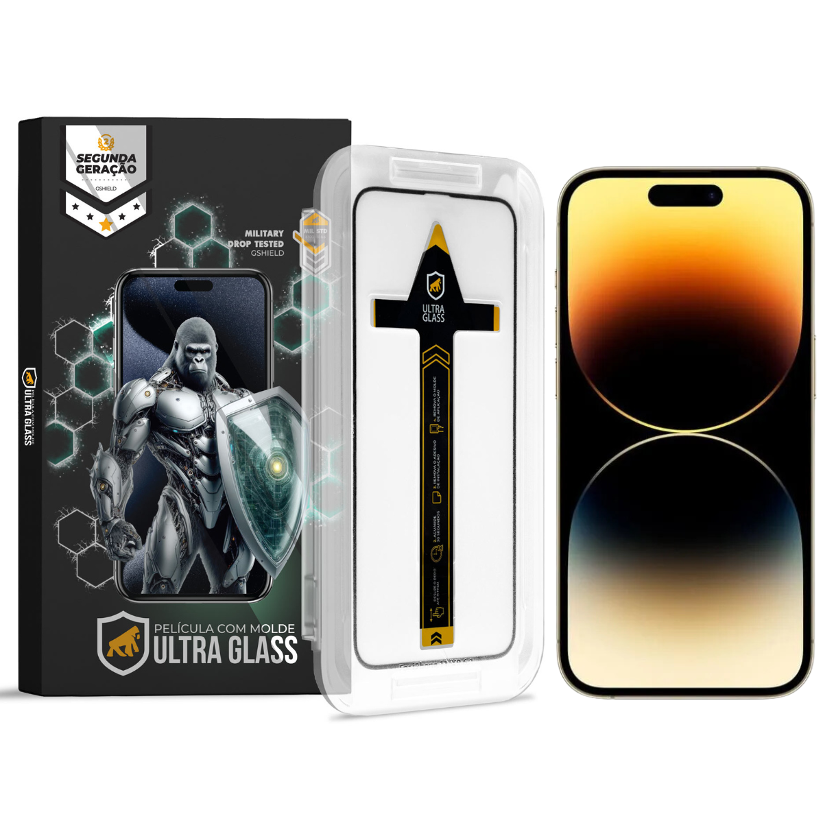 A Película Ultra Glass para iPhone 14 Pro Max, da Gshield, possui Tecnologia Touch Ultra Sensitive: desenvolvida com vidro temperado ionizado, camada olefóbica, garantindo durabilidade, toque rápido e sem interferência; fazem como que a Ultra Glass ofereça uma proteção de última geração para a tela do smartphone.